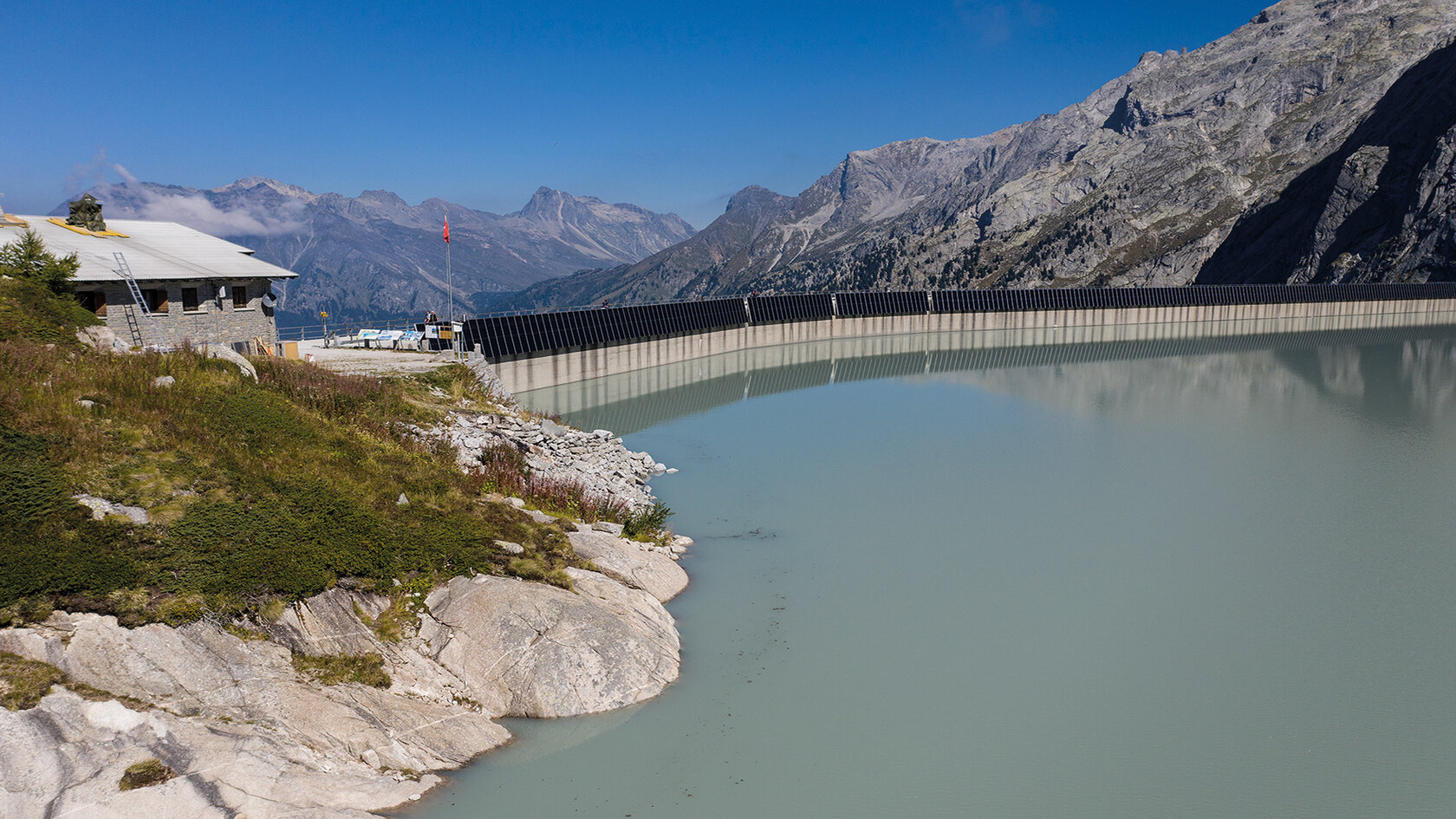 ewz realisierte im Sommer 2020 auf der Staumauer Albigna im Bergell die erste Photovoltaikanlage auf einer Staumauer im hochalpinen Gebiet auf rund 2’100 Metern über Meer. Mit den über 1’200 Photovoltaikmodulen mit einer Gesamtleistung von 410 Kilowatt Peak (kWp) können pro Jahr rund 500 Megawattstunden Naturstrom produziert werden. Dies entspricht dem jährlichen Strombedarf von ca. 210 Stadtzürcher Haushalten. Im Vergleich zu Anlagen im Mittelland ermöglichen hochalpine Photovoltaikanlagen bessere Ertragswerte. Grund dafür sind die intensivere Sonneneinstrahlung in diesen Höhenlagen sowie die reflektierende Schneedecke. Des Weiteren steigt die Effizienz der Anlage mit sinkenden Aussen- und somit Modultemperaturen. Rund die Hälfte dieser Stromproduktion fällt im Winter an und trägt zur Versorgungssicherheit in dieser Jahreszeit bei.