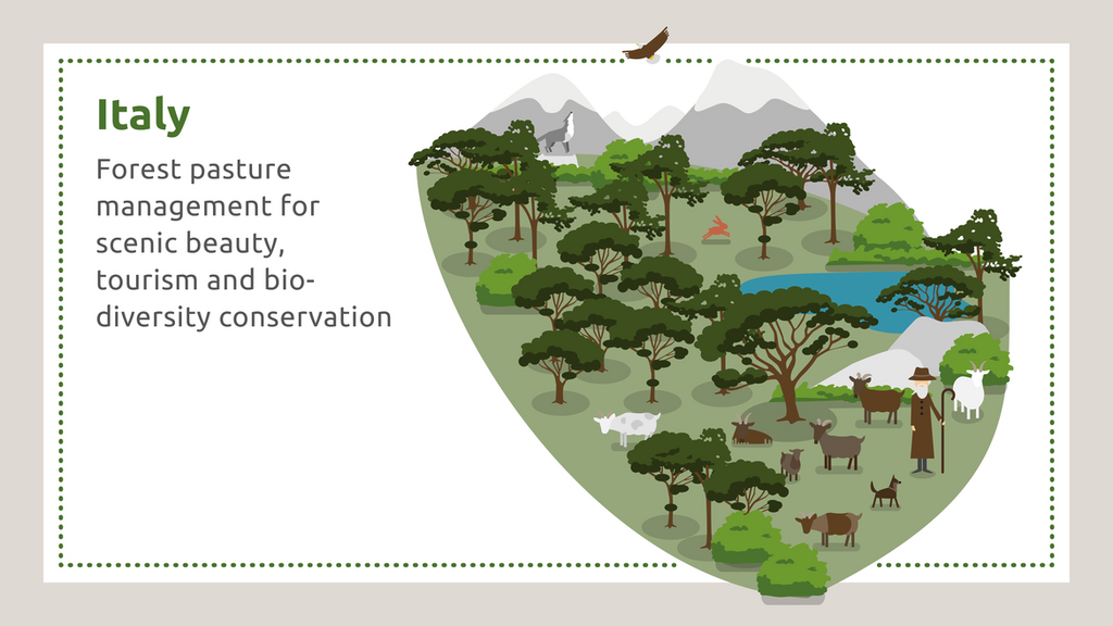 Das im Westen des Trentino gelegene Gebiet des Primiero wurde als Standort in Italien ausgewählt; durch die Dienststelle Forsten und Fauna der Autonomen Provinz wurde die integrierte Bewirtschaftung von Wäldern und Weiden gefördert, wie sie in den Jahren zuvor bereits in der Provinz umgesetzt worden war. Sie wurde als geeignete innovative Strategie für die Förderung der Multifunktionalität der Wälder und die Wiederbelegung der Siedlungen in der Bergregion gesehen.