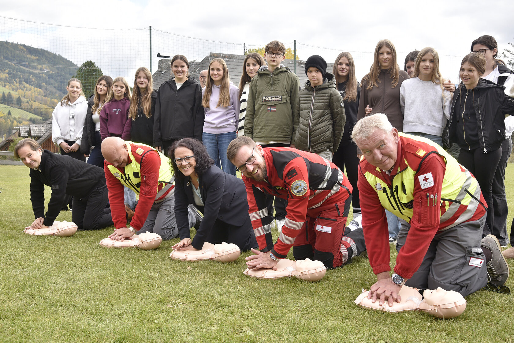 (LK) Herzdruckmassage anwenden, Notruf absetzen oder einen Laiendefibrillator bedienen – man hofft natürlich nie, in diese Situation kommen zu müssen. Tritt sie aber ein, zählt jede Sekunde. Im Rahmen der Aktion „Kids Save Lives“ werden seit dem Start im Oktober 2021 jährlich rund 20.000 Schülerinnen und Schüler für das richtige Verhalten im Notfall vorbereitet. Mit der Mittelschule St. Michael im Lungau nimmt seit heute die landesweit 100. Schule teil.