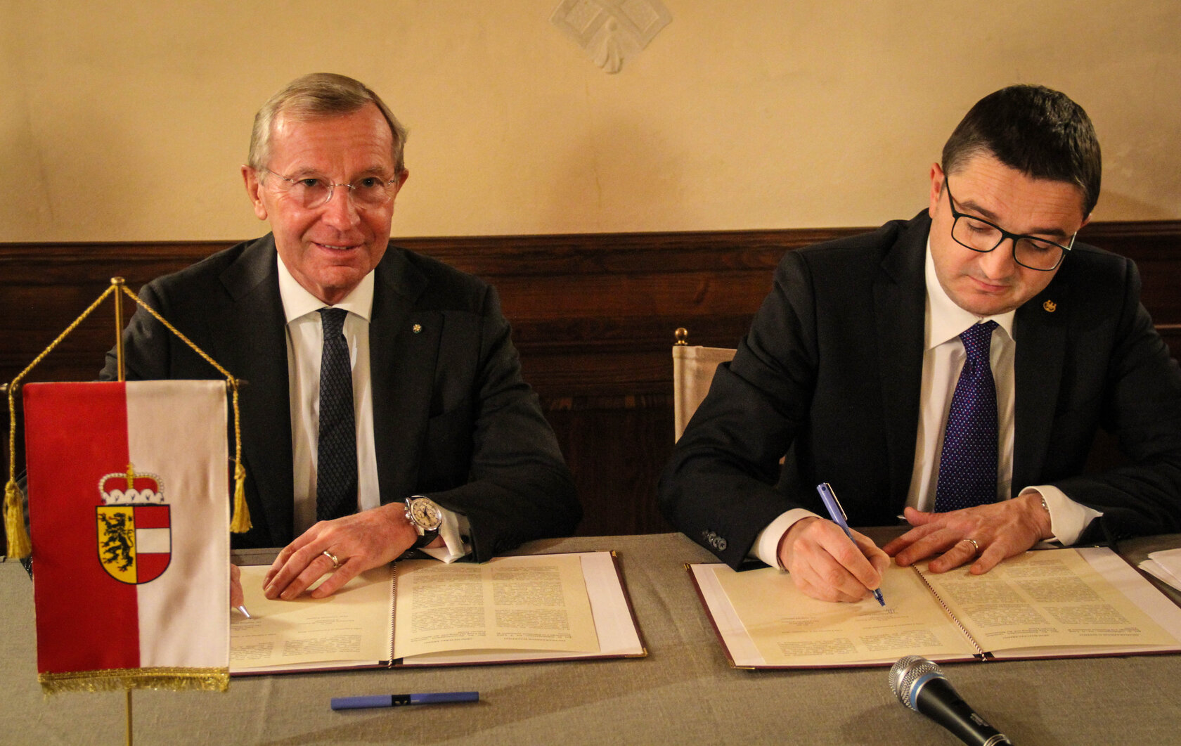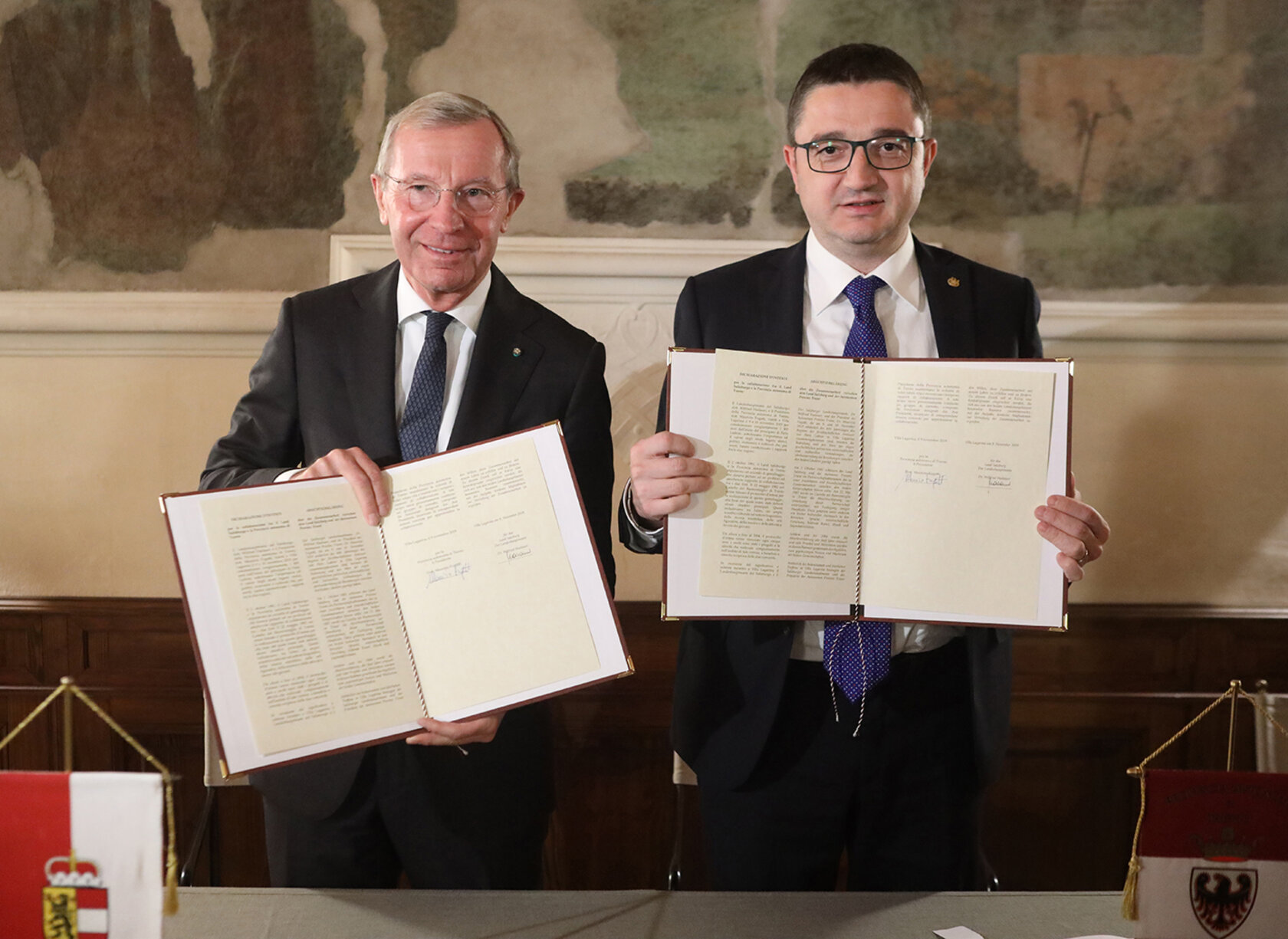 Das Jubiläum nahmen Landeshauptmann Wilfried Haslauer und Maurizio Fugatti, Präsident der Autonomen Provinz Trient, zum Anlass, die Salzburg-Trientinische Freundschaft aufzufrischen und das bestehende Partnerschaftsabkommen zu erneuern. „Die Partnerschaft besteht seit 1981. Wir haben nun die Gelegenheit genutzt, diese Beziehungen noch weiter zu vertiefen“, betonte Haslauer. Mit der am 9. November 2019 unterzeichneten Absichtserklärung wird die Basis für eine Kontaktgruppe gelegt, die für regen Austausch in Sachen Kultur, Sprache, Forschung, Musik und Jugend sorgen soll.
