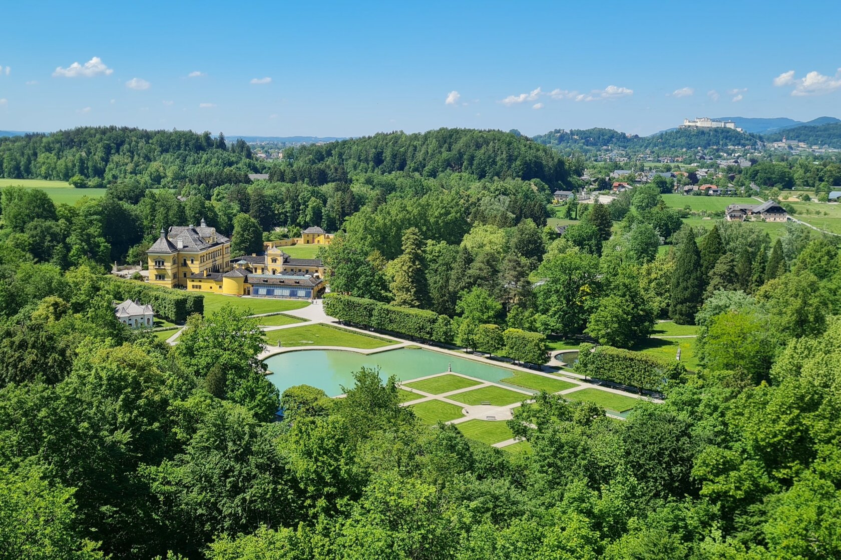 Land Salzburg/Bernhard Kern - Der Blick vom zweiten Stock des Volkskundemuseums im Monatsschlössl Richtung Schloss Hellbrunn sowie der Festung Hohensalzburg.