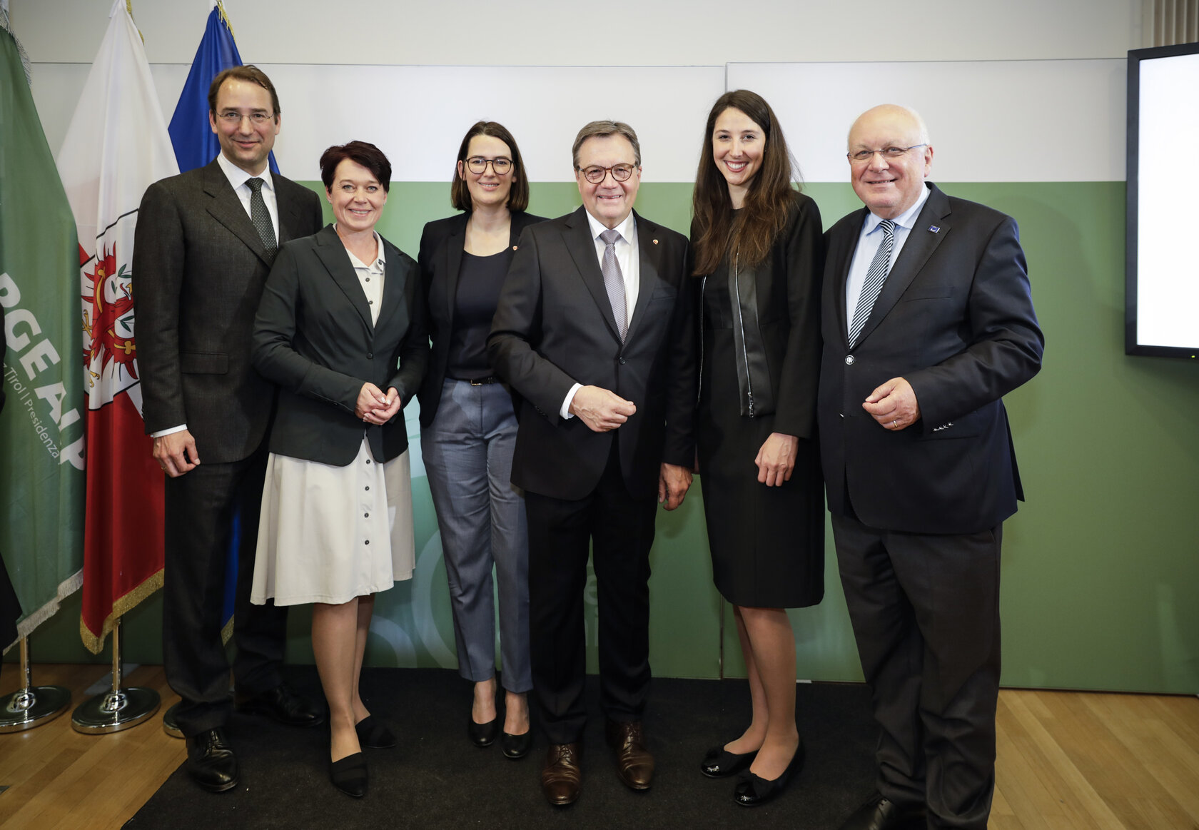 (da sx): Capo della Rappresentanza permanente dell'Austria presso l'Unione europea Nikolaus Marschik, Sonja Ledl-Rossmann, Deputata UE Barbara Thaler, Günther Platter, Vicepresidente della Dieta Tirolo Sophia Kircher, Franz Schausberger