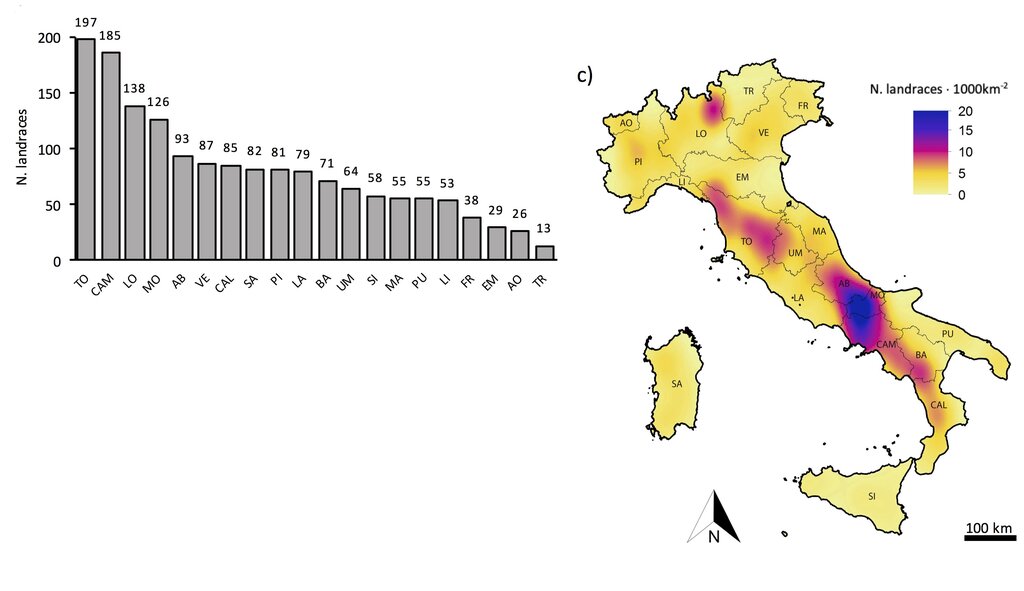 Grazie al lavoro di ricerca del Centro di Ricerca Coordinato Ge.S.Di.Mont. per la Gestione Sostenibile e la Protezione delle Aree Montane https://www.mdpi.com/1424-2818/13/2/70/pdf è stato possibile mappare più di cento varietà orticole tradizionali e la Lombardia risulta così la terza regione in Italia per numero di varietà orticole tradizionali. L’inventario del CRC Ge.S.Di.Mont. (https://www.unimontagna.it/servizi/mappatura-agrobiodiversita-vegetale/) risulta al momento il più completo per quanto riguarda le piante orticole della zona centro-orientale alpina. La Lombardia, pur essendo una tipica regione di agricoltura industrializzata di pianura, ha conservato molte varietà grazie alla presenza di varietà tradizionali di montagna di Zea mays (mais), Solanum tuberosum (patata) e Phaseolus spp (fagiolo). Alcuni esempi sono il fagiolo Copafam, tipico delle Alpi e Prealpi Bergamasche e Bresciane, nonché la rosa dei mais lombardi: le varietà locali “Spinato di Gandino”, “Rostrato Rosso di Rovetta”, “Scagliolo di Carenno”, “Nero Spinoso” e “Mais delle Fiorine” sono ottimi esempi di agro-ecotipi di mais da polenta la cui produzione si è sviluppata nei secoli.
