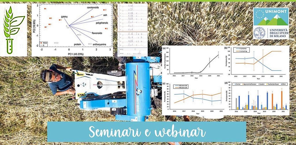 La partecipazione ai seminari ha rivelato un trend crescente, confermando l’aumento di interesse verso questo tipo di attività agricole, anche da parte di partecipanti senza formazione nel campo agricolo e forestale, che è passata da un 50% iniziale, a un 15% nel 2021, con l’aumento della partecipazione invece di professionisti. Tale fenomeno è probabilmente dovuto alla necessità di Formazione Continua di agronomi e forestali, nonché a progetti specifici sulla formazione in agricoltura, come il Progetto di Sviluppo Rurale finanziato da Regione Lombardia: CereAlp. Tale progetto riguarda attività formative pratiche e di diffusione delle conoscenze sulle varietà cerealicole e pseudocerealicole, nonché piante officinali, attualmente coltivate in Lombardia. Inoltre, si è visto un aumento della partecipazione in streaming, confermando l’importanza delle tecnologie smart per ridurre la marginalità dei territori montani e superare momenti di grave crisi come quella della pandemia dovuta al virus Covid19.