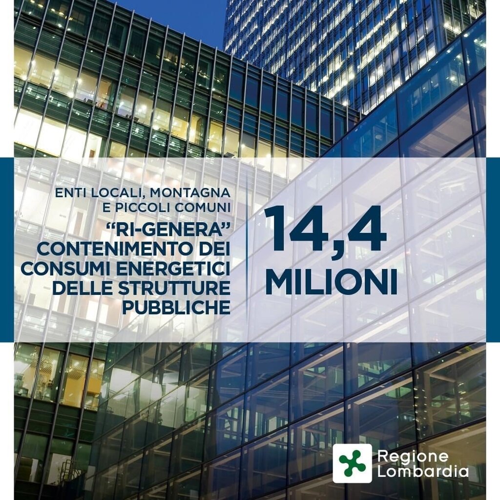 L'iniziativa, proposta dall'assessore agli Enti locali, Montagna e piccoli Comuni, Massimo Sertori, è volta al contenimento dei consumi energetici delle strutture pubbliche attraverso l'integrazione di impianti a fonte rinnovabile. Le risorse messe in campo da Regione Lombardia ammontano complessivamente a 14,4 milioni di euro, di cui 5 milioni destinati ai piccoli Comuni. Il bando sarà operativo dal mese di maggio.