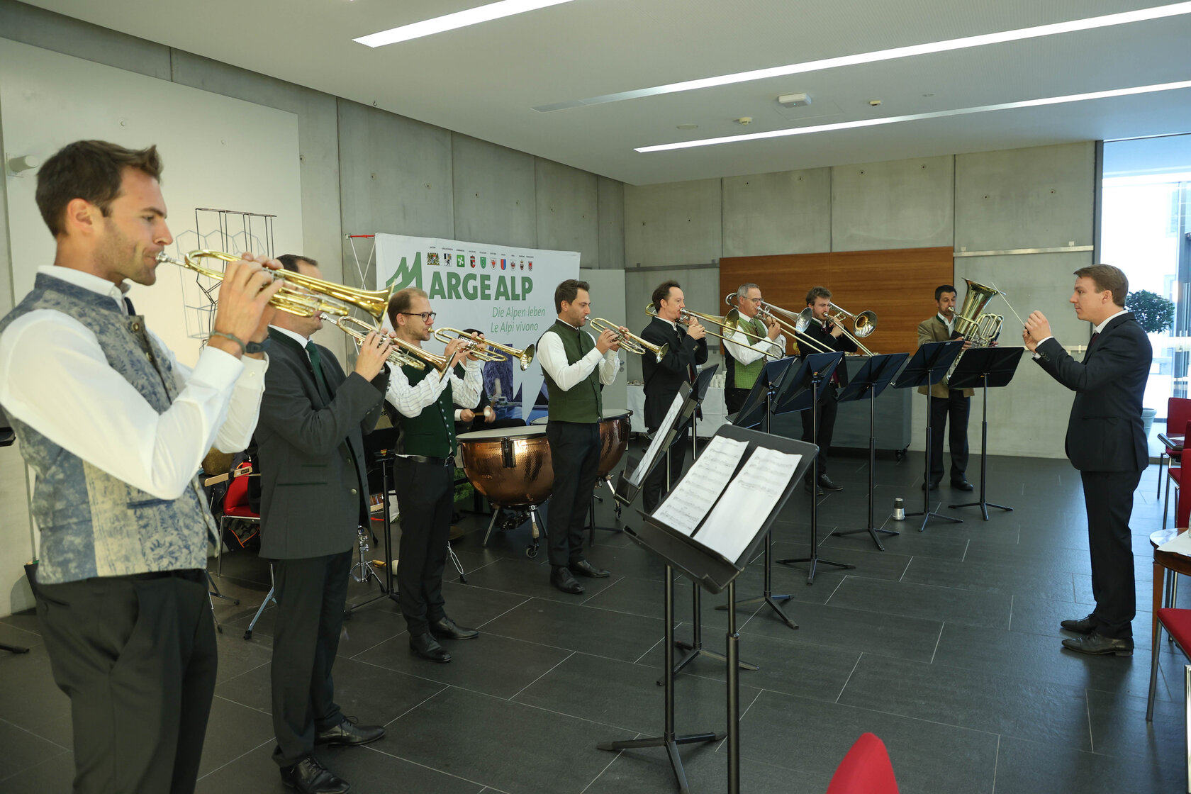La composizione di Gasser è scritta per quattro trombe, tre tromboni, tuba, timpano e batteria. Il brano è stato eseguito dai musicisti dell’associazione regionale per la musica bandistica del Land Salisburgo e i musicisti dell’orchestra del Mozarteum, tra i quali il direttore Christian Hörbiger: “Le fanfare per noi musicisti bandistici non sono niente di straordinario, ma partecipare a una prima è una cosa molto particolare e anche una grande gioia, perché si tratta di un brano molto ben riuscito, anche se complesso, divertente da eseguire”. E in quanto originario di Pinzgau, il direttore esprime un altro auspicio: “Che le note di questa bella fanfara risuonino spesso nella nostra regione!”