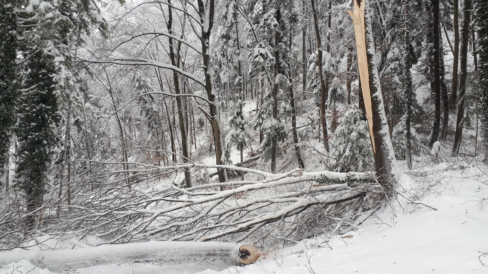Le nevicate straordinariamente abbondanti determinano un forte rischio di rottura dei rami e caduta degli alberi. Per questo è pericoloso passeggiare nel bosco, ai limiti del bosco o sotto gli alberi. C’è il pericolo che i rami carichi di neve possano spezzarsi e cadere, e gli alberi possano cadere e bloccare la strada. L’ufficio forestale del Cantone perciò consiglia caldamente di non andare nel bosco finché la neve non sarà caduta dalle corone degli alberi.